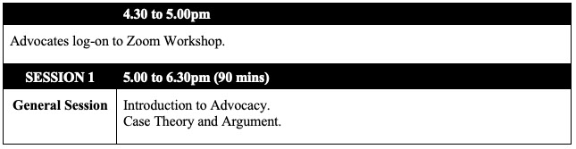ALL advocates attend Wednesday (Session 1) and Thursday (Session 2) ONLINE.